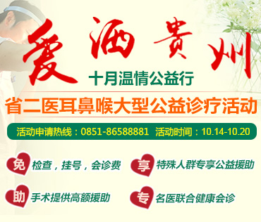 “爱洒贵州,十月温情公益行”特为耳鼻喉患者开通网络提前预约通道。同时,根据患者咨询,30分钟问诊,3个月跟踪服务,建立长期健康档案。为保证患者就医质量,网络预约每天限15人。